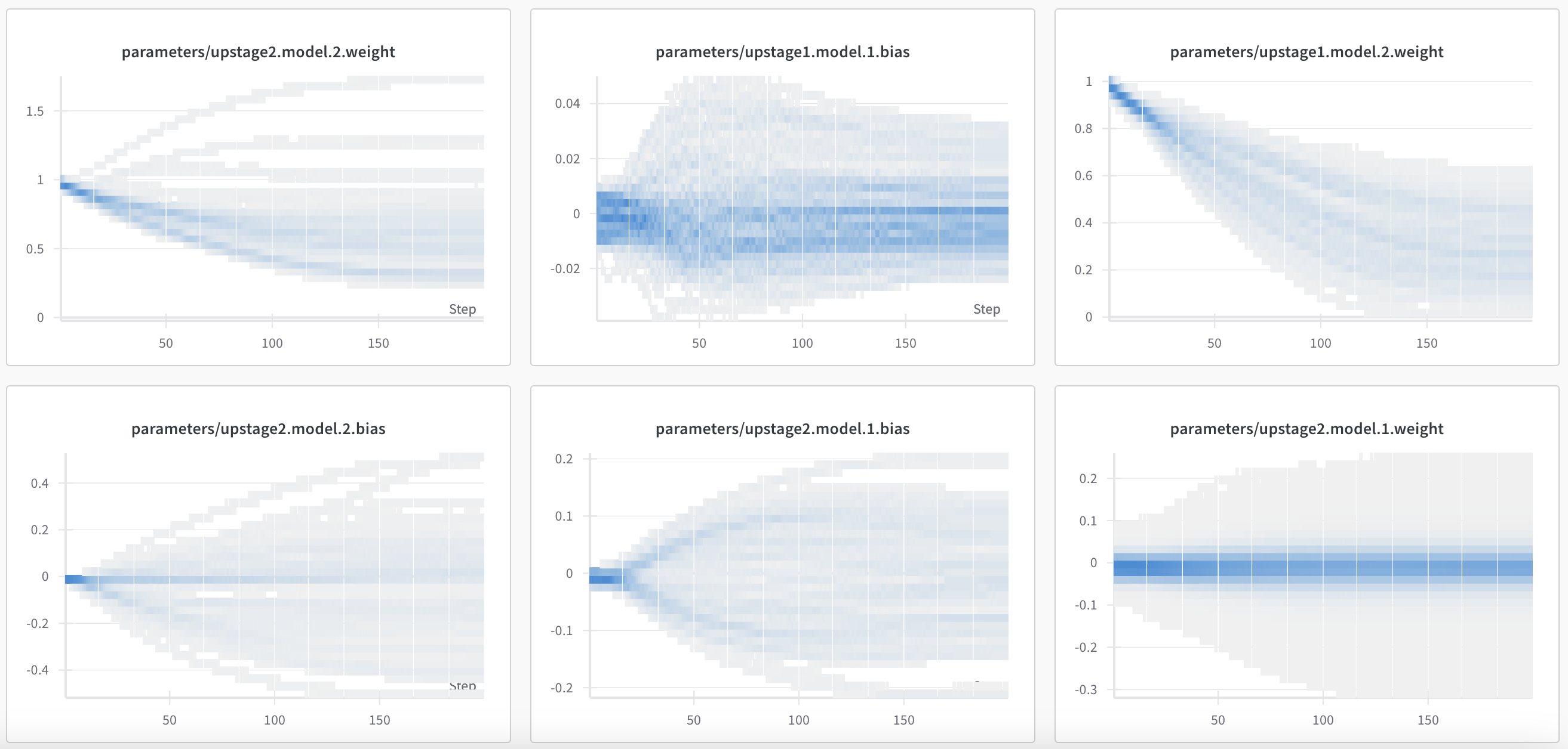 모델 학습 전 정의한 모델을 wandb.watch()에 넘겨주면 학습 동안 가중치 및 그래디언트 변화를 자동으로 기록해준다.