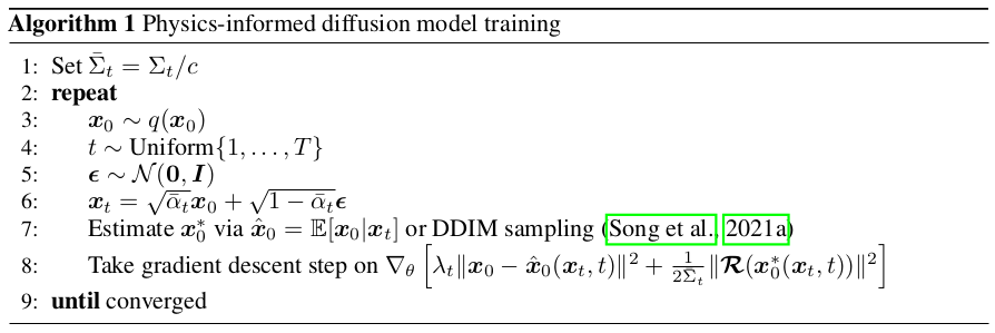 아이디어: PINN objective를 Diffusion에 통합해서 생성된 데이터가 주어진 물리 (PDE) 제약조건을 따르도록 하자.